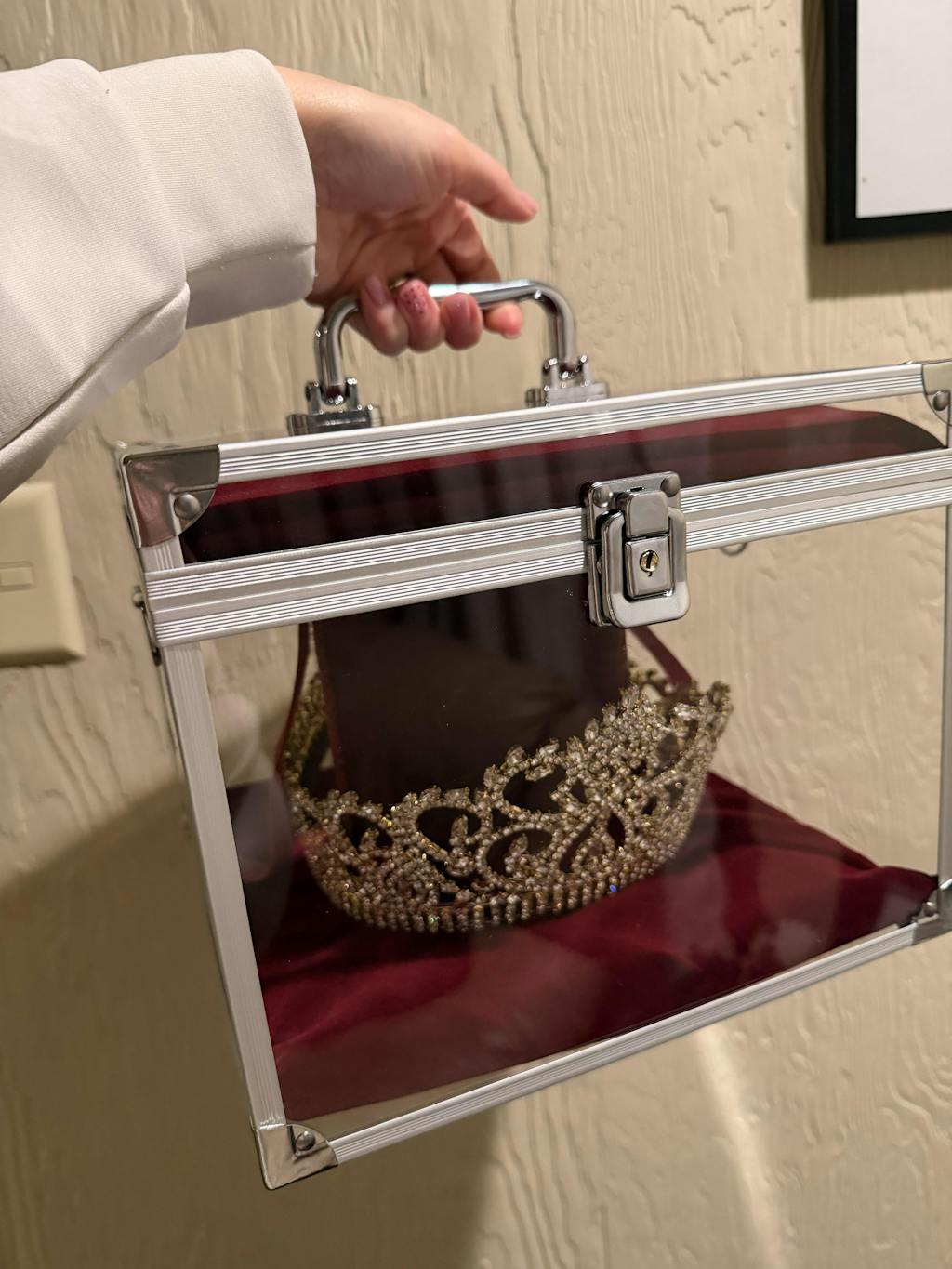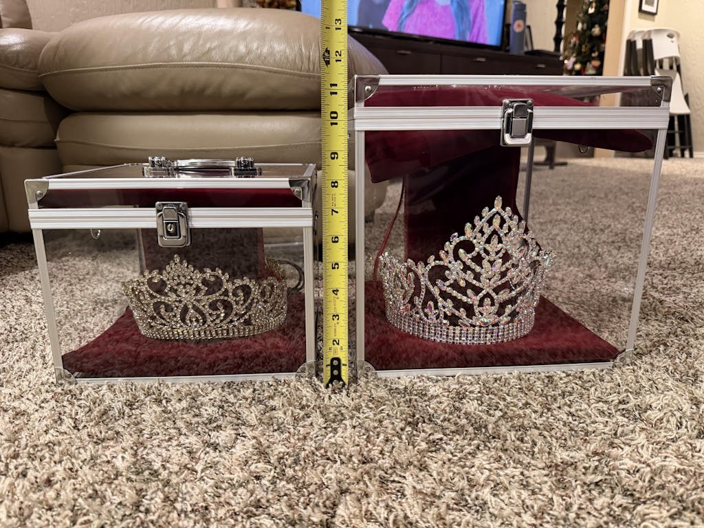 This necklace is 1.5" at the tallest point. It is adjustable from 12.25" to 14.5". The earrings are 1.5" tall. Plated in Sterling Silver.