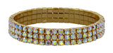 #11949ABG - 3 Row Stretch Rhinestone Bracelet - AB Gold