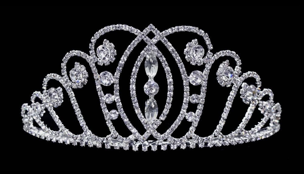 2.75" high x 5.5" diameter. Plated in Sterling Silver with a comb on each end fits all size heads. Each piece is individually wrapped in plastic.