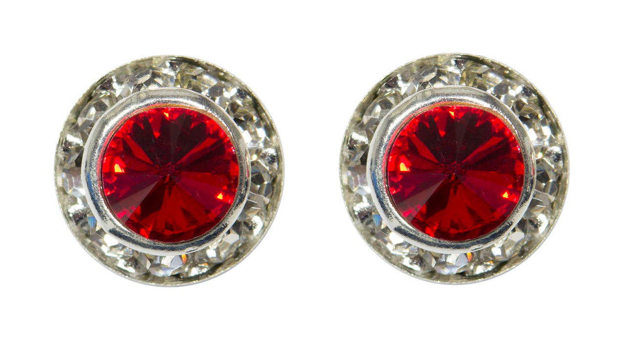 #12535 Siam 11mm Rondel with Rivoli Button Earrings